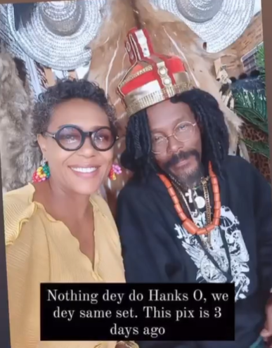 Shan George however debunked the claim by sharing a photo and video of them on a movie set in Asaba three days ago.