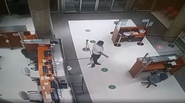 In the footage viewed by shocked hospital staff, the security guard can be seen getting up from his chair with a clipboard in hand to let someone in.