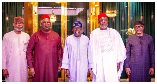 Tinubu Meets With Pius Anyim, Olisa Metuh In Aso Villa